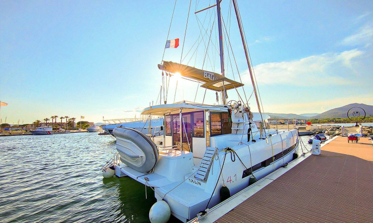 Catamaran à voile Poséidon, situé en France, Port Grimaud. Le catamaran convient à tous ceux qui souhaitent passer leurs vacances en pleine nature dans le confort. Poséidon est idéal pour les voyages et les loisirs. Ce Bali 4.1 est idéal pour une balade en bateau en famille ou entre amis. Ce catamaran peut être réservé avec ou sans skipper.